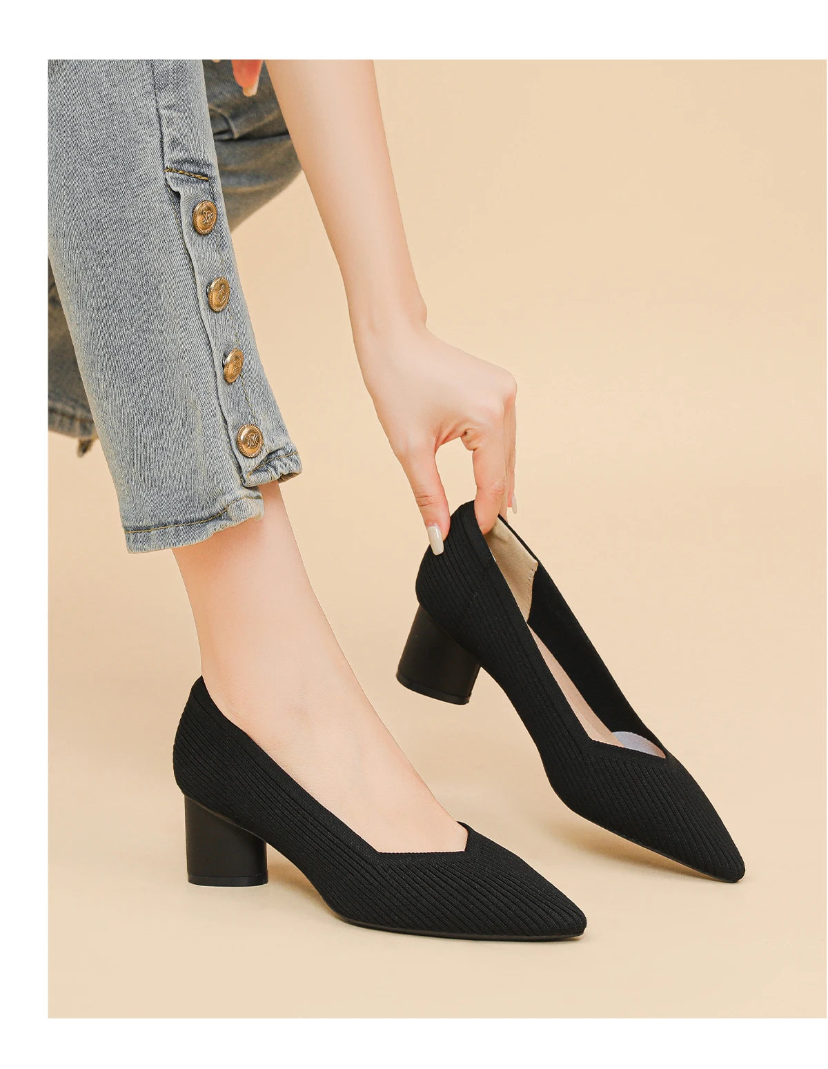 Aveline – נעלי עקב סרוגות נשיות בעיצוב נקי ואלגנטי (גובה 6 ס״מ)
