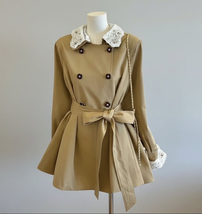 Celestine – מעיל צרפתי אלגנטי בגזרת אוברסייז עם צווארון בובה ותחרה