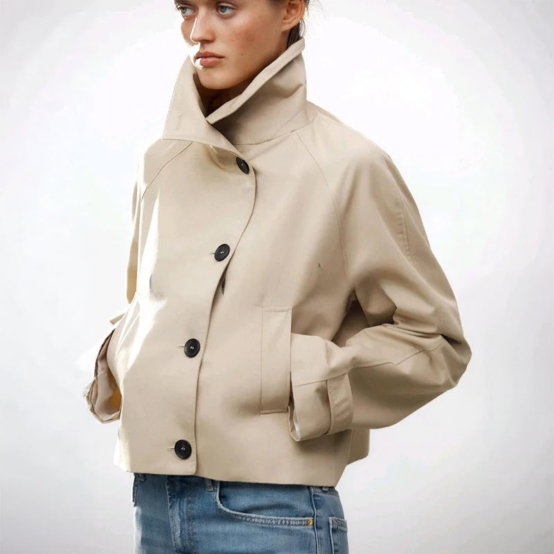 Fahima ג׳קט קצר בגזרה ישרה עם כפתורים וצווארון גבוה