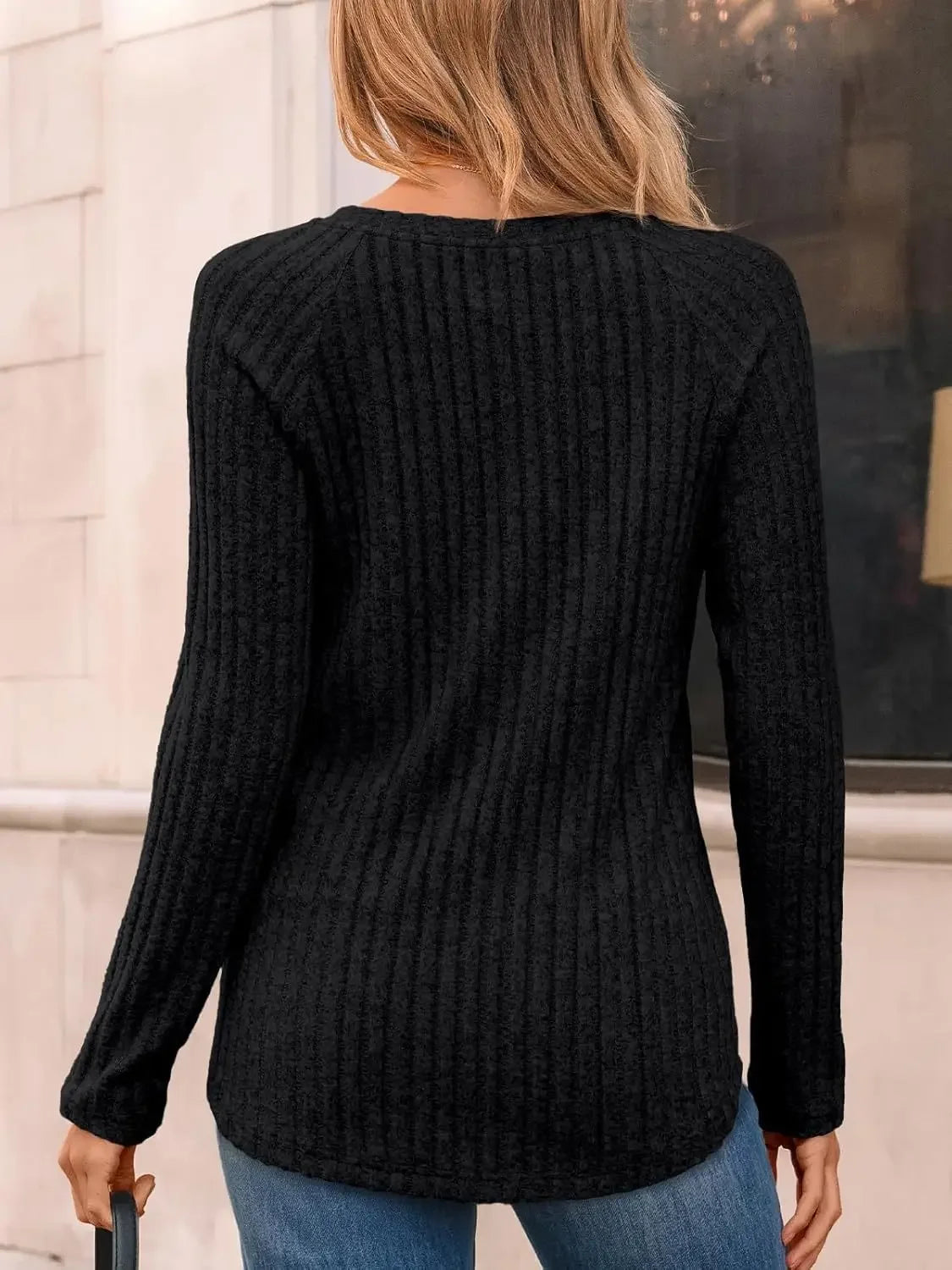 חולצה ארוכת שרוול מבד סריג רך ואיכותי, עם טקסטורת ריבס עדינה שמעניקה מראה יוקרתי ונוח. הצבע האפור הקלאסי משתלב בקלות עם כל ג'ינס או חצאית, ויוצר לוק מושלם לעבודה, ליום יום או לערב חורפי אלגנטי. בד נעים למגע ועמיד לאורך זמן – פריט חובה בארון הבגדים שלך.