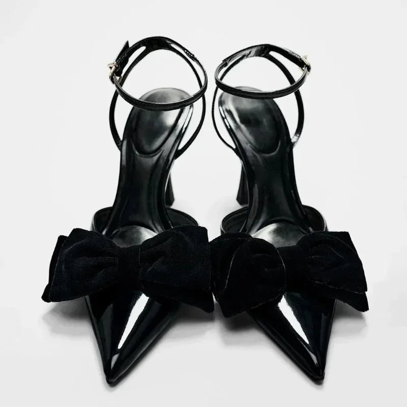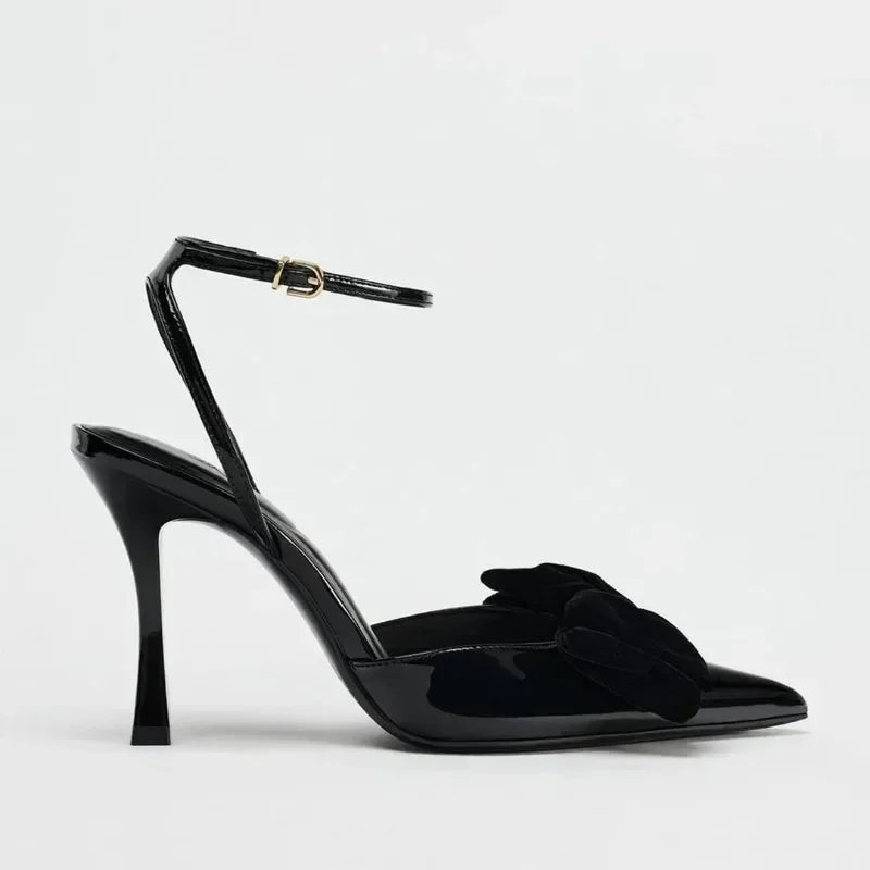 שפיץ מחודד שמאריך את קו הרגל, רצועת קרסול עם אבזם ועקב דק שמעניק יציבה ונוכחות יוקרתית.