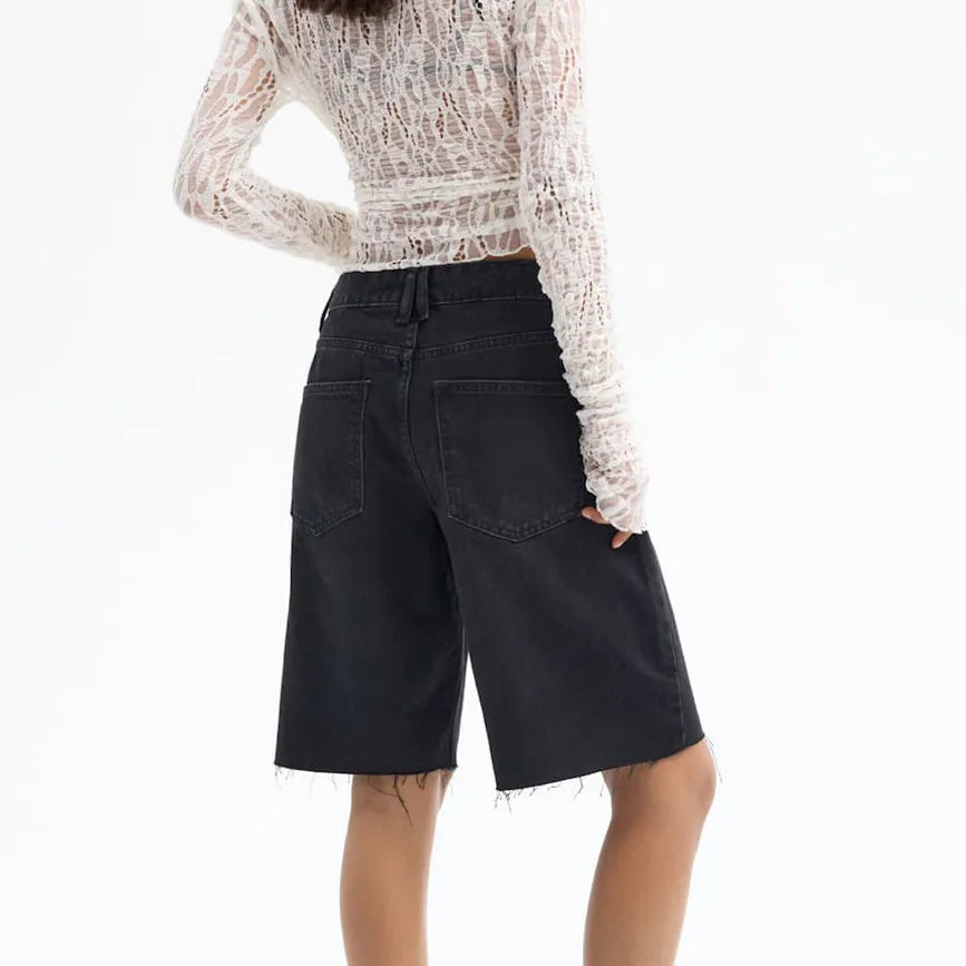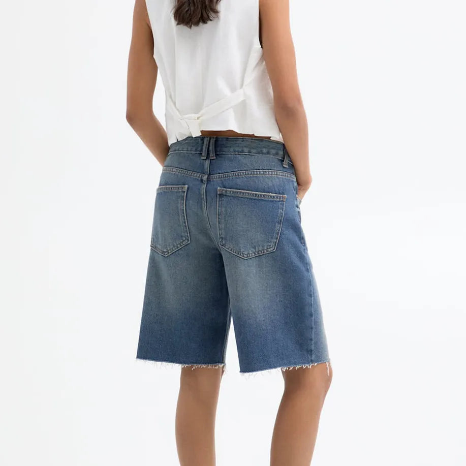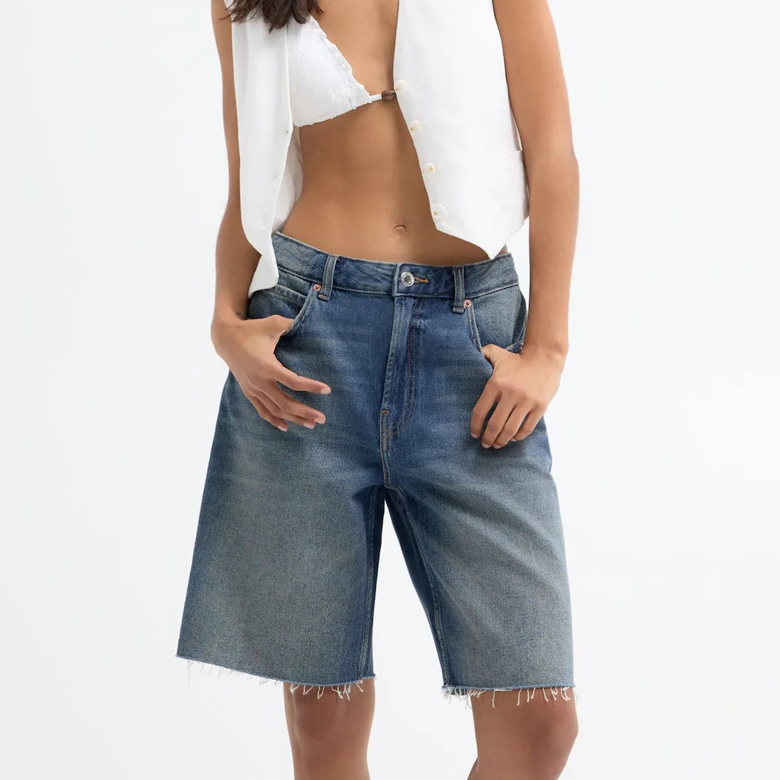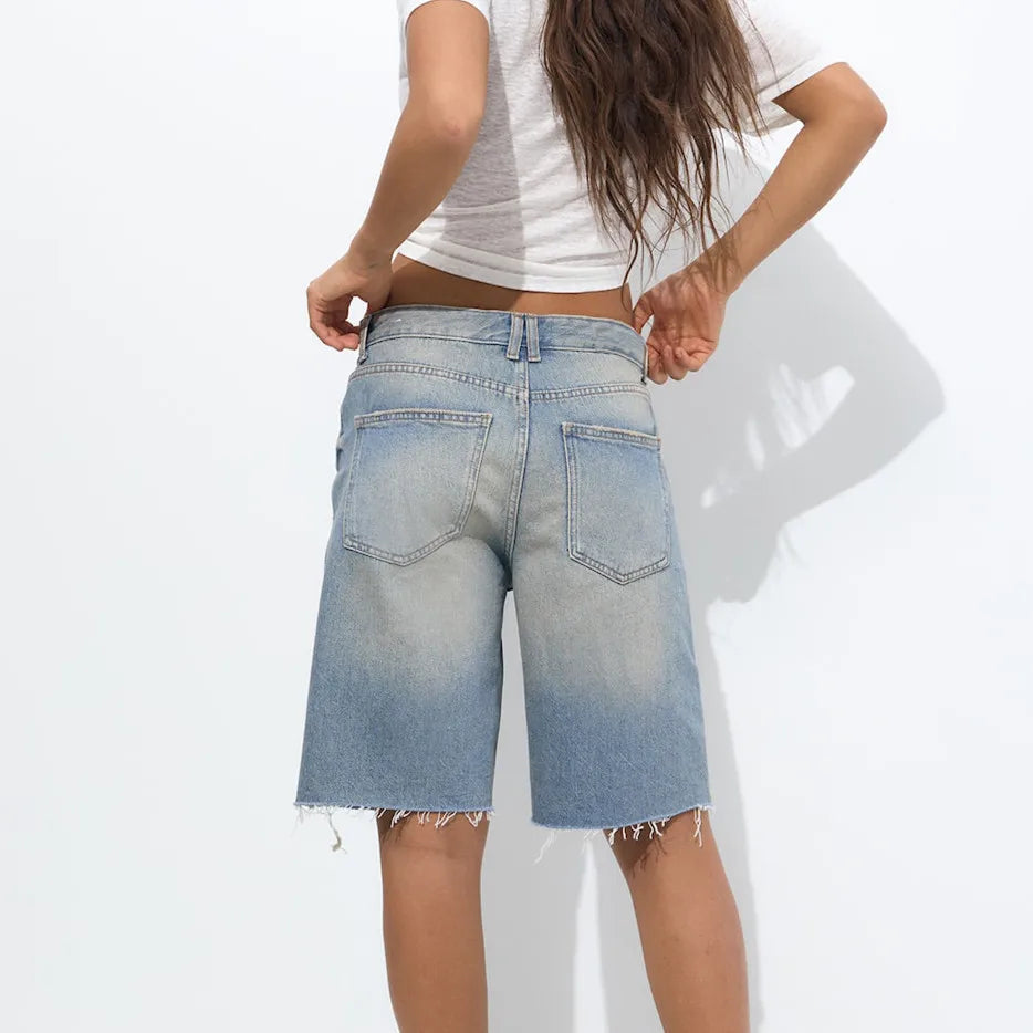 גזרת Y2K רחבה באורך ברך עם קו נקי ומדויק למראה קיצי מודרני.