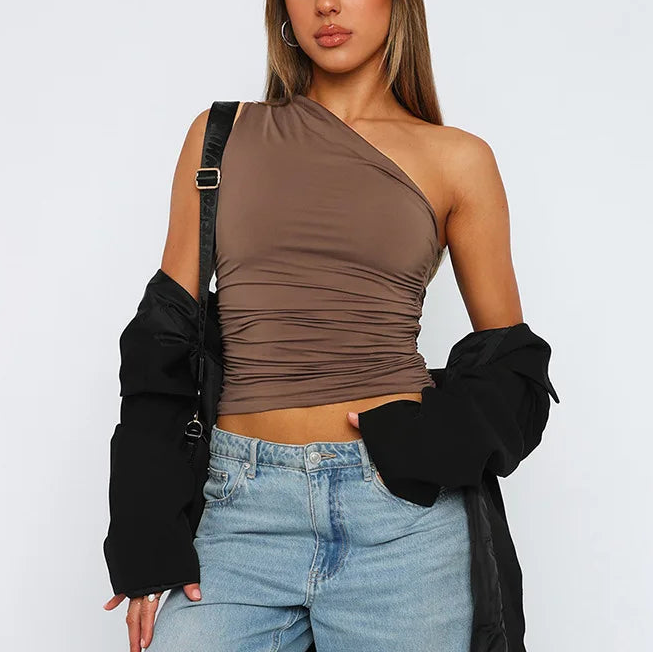 PAZ טופ כתף אחת צמוד בסגנון קיצי